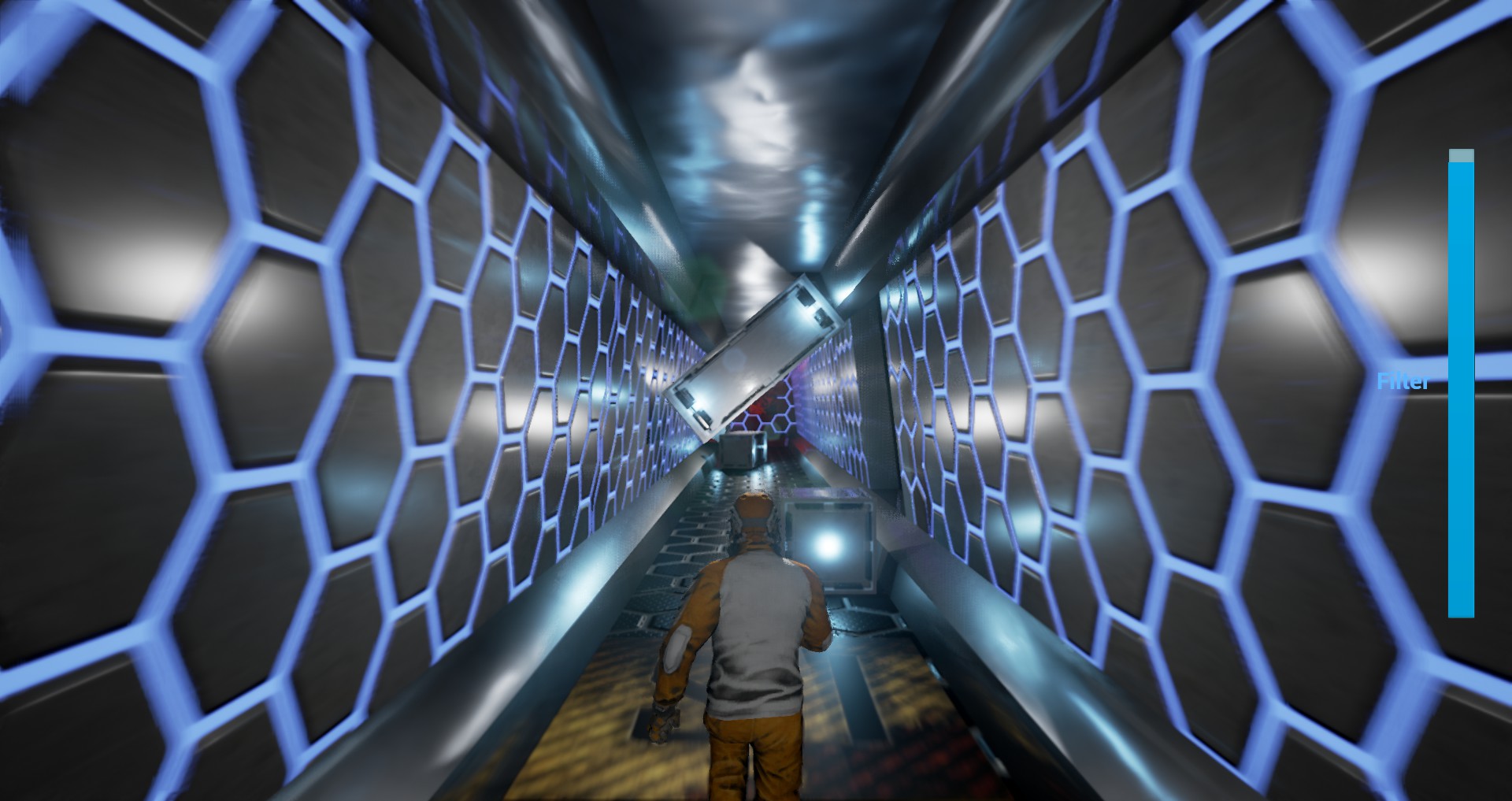 I improved as well about making simple AI with UE4 and how to create responsible UI and simple system progression (as there is a evolution on lights needed and loot to be gathered). I learned for next games that – it is important that the level itself has to gide the player trough it but at the same time not give all the clues